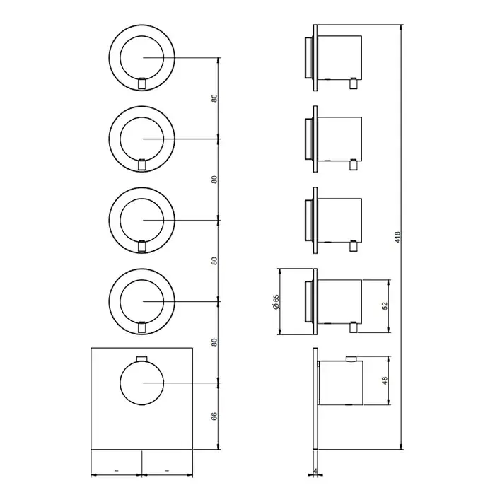 Gessi 316 Внешняя часть встраиваемого в стену термост смес на 4 потр, цвет: black metal brushed PVD 54338#707