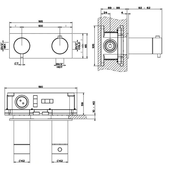 Gessi 316 Bath-Shower Термостат для душа встраиваемый, запорный вентиль, цвет: steel brushed 54032#239