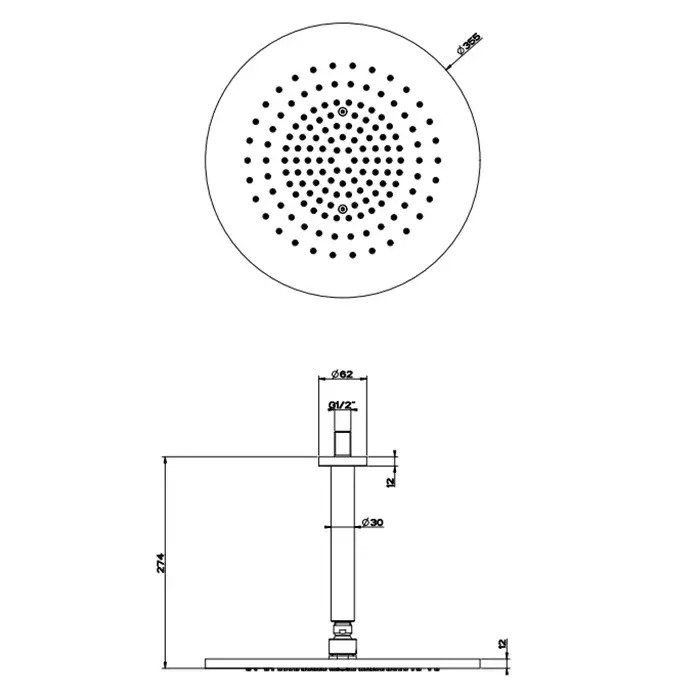 Gessi 316 Bath-Shower Верхний душ 36 см, кронштейн потолочный 27 см, цвет: black metal brushed PVD 54152#707