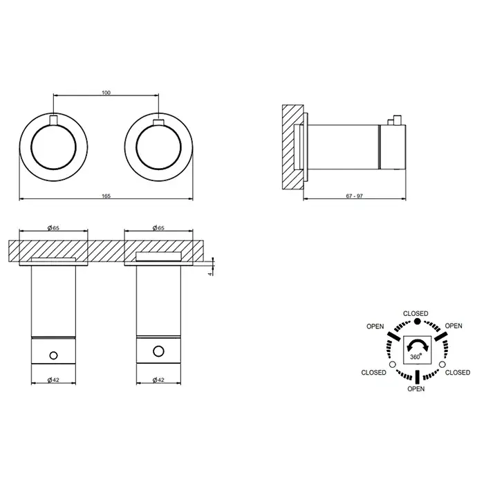 Gessi 316 Внешняя часть смесителя для душа на 2 потребителя, цвет: matte black 54038#299