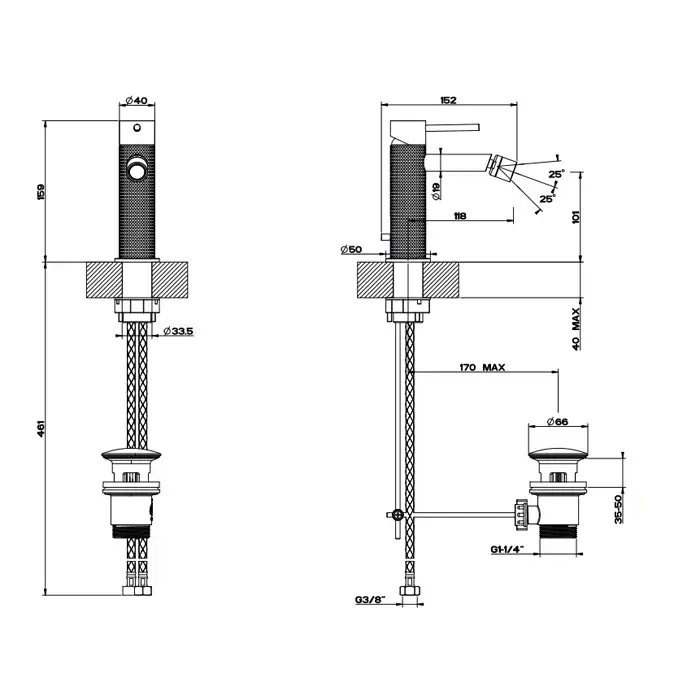 Gessi 316 Cesello Смеситель для биде, однорычажный, с донным клапаном, цвет: steel brushed 54407#239
