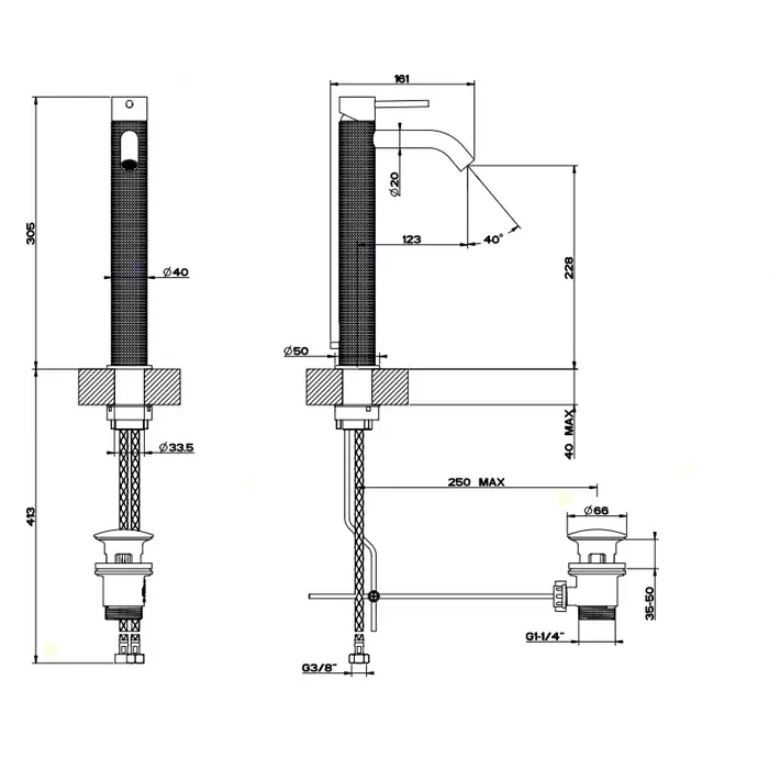 Gessi 316 Cesello Смеситель для раковины высокий с донным клапаном однорычажный, цвет: matte black 54403#299
