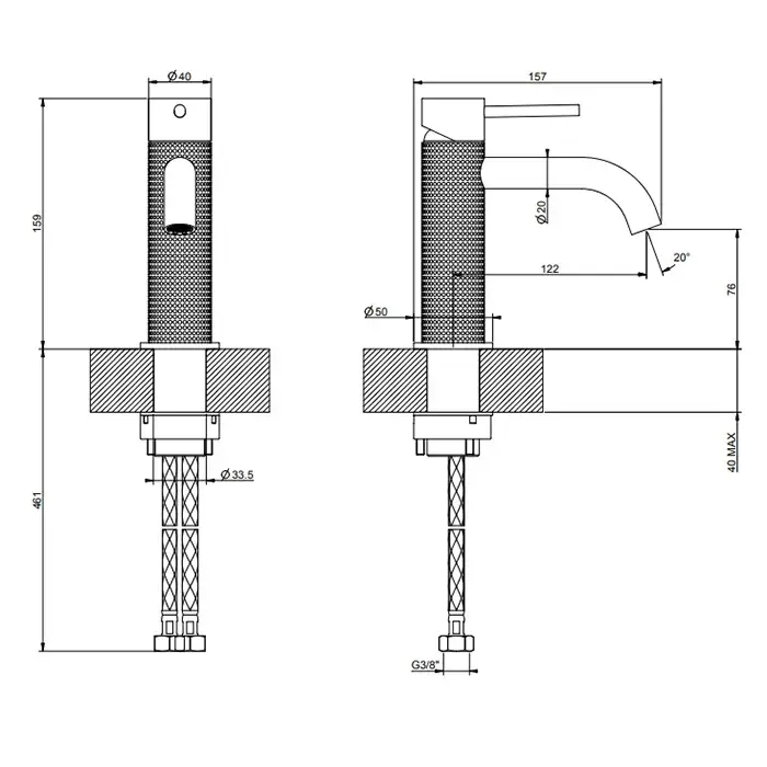 Gessi 316 Cesello Смеситель для раковины без донного клап. двухвент., цвет: black metal brushed PVD 54412#707
