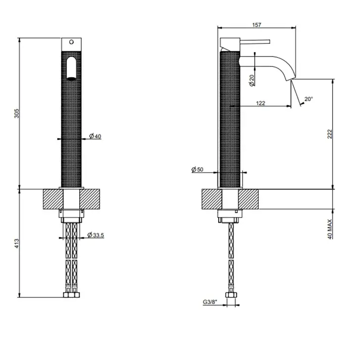 Gessi 316 Cesello Смеситель для раковины высокий с донным клапаном однорычажный, цвет: matte black 54403#299