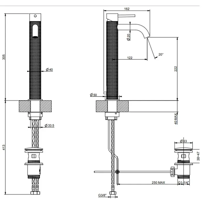 Gessi 316 Cesello Смеситель для раковины высокий с донным клап. однорыч., цвет: black metal brushed 54403#707