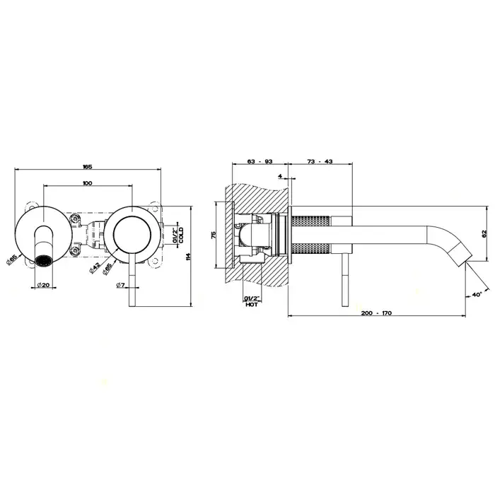 Gessi 316 Cesello Смеситель для раковины без донного клап. двухвент., цвет: black metal brushed PVD 54412#707