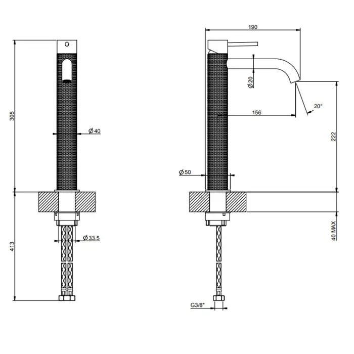 Gessi 316 Cesello Смеситель для раковины без донного клап. двухвент., цвет: black metal brushed PVD 54412#707