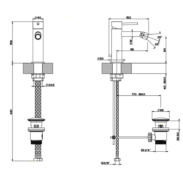 Gessi 316 Flessa Смеситель для биде с донным клапаном, цвет: steel brushed 54007#239