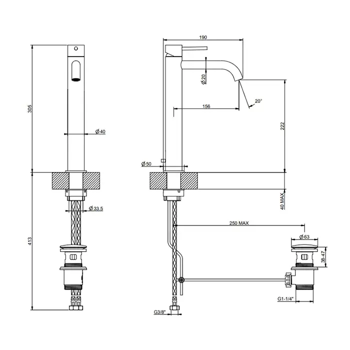 Gessi 316 Flessa Смеситель для раковины высокий, д/к, высота излива 22,2 см, цвет: matte black 54009#299