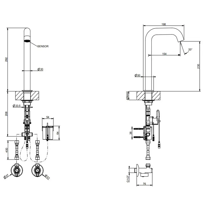 Gessi 316 Flessa Встраиваемый смеситель с изливом 20-18 cм, цвет: warm bronze brushed PVD 54094#726
