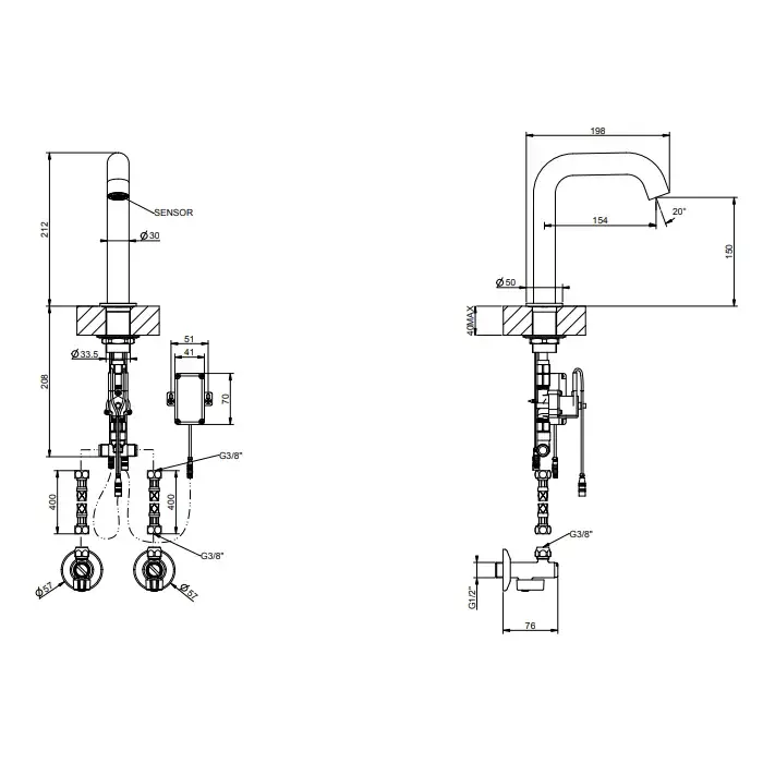 Gessi 316 Flessa Смеситель настольного монтажа для удаленного управления, цвет: steel brushed 54005#239