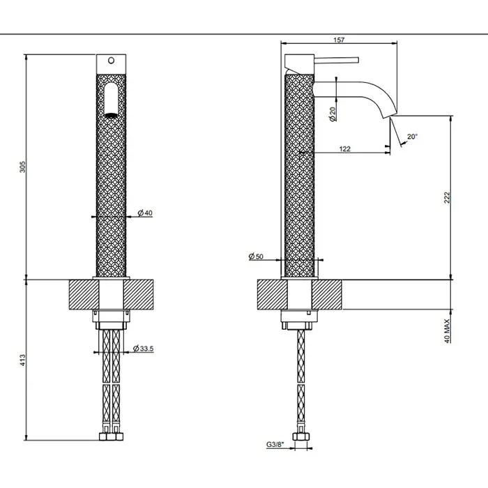 Gessi 316 Intreccio Смеситель для раковины без донного клап. однорыч., цвет: black metal brushed PVD 54102#707