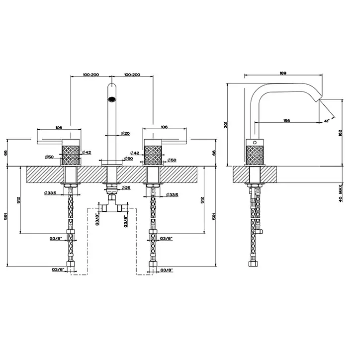 Gessi 316 Intreccio Смеситель для раковины на 3 отверстия, цвет: brushed black metal pvd 54112#707