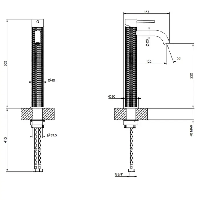 Gessi 316 Meccanica Смеситель для раковины высокий на 1 отв, цвет: copper brushed PVD 54206#708