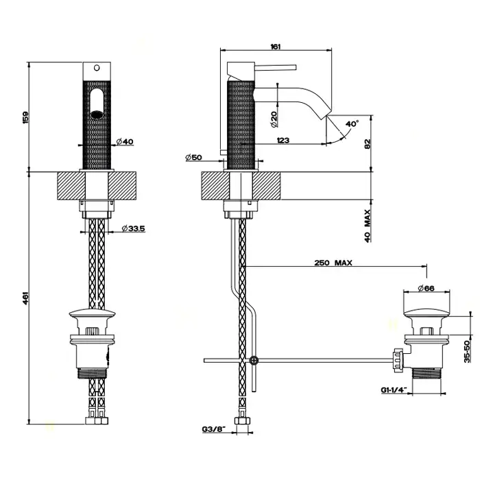 Gessi 316 Meccanica Смеситель для накл раков, без дон клап, излив 12,3см, цвет: copper brushed PVD 54209#708
