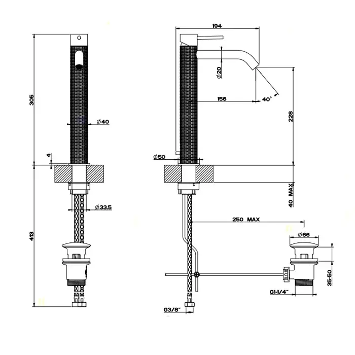 Gessi 316 Meccanica Смеситель для накл раков, без дон клап, излив 12,3см, цвет: copper brushed PVD 54209#708