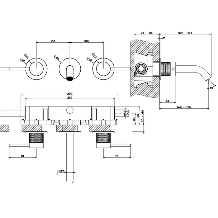 Gessi 316 Meccanica Встраиваемый смеситель для раковины, цвет: brushed black metal pvd 54292#707