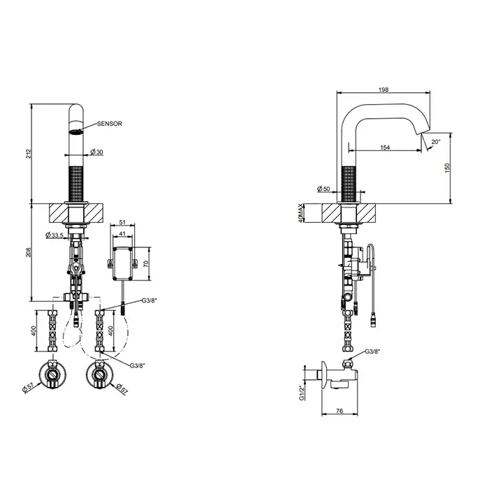 Gessi 316 Смеситель для раковины на 1 отв. электронный, цвет: black metal brushed PVD 54281#707