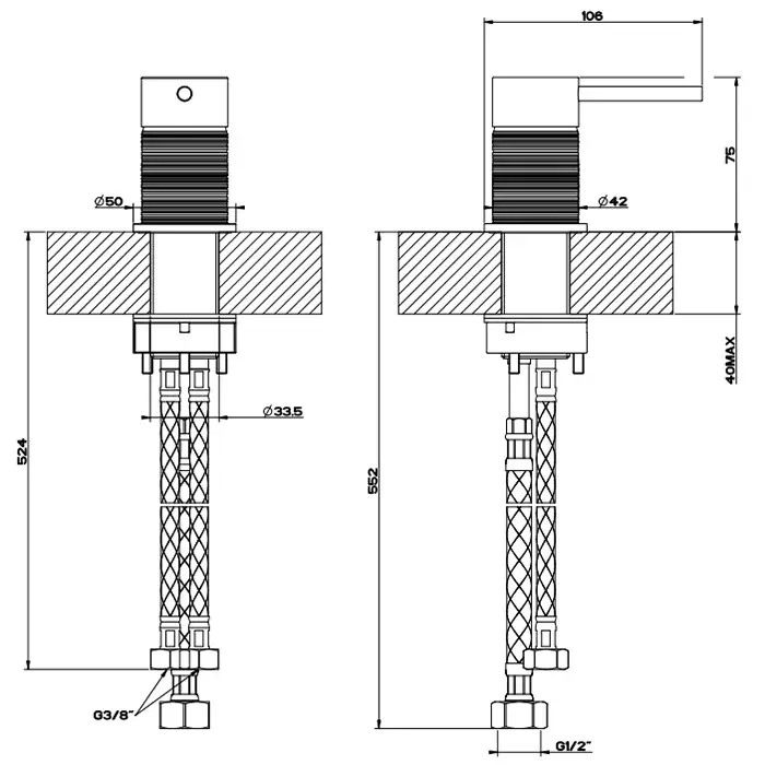 Gessi 316 Trame Смеситель для раковины без донного клапана однорыч., цвет: black metal brushed PVD 54302#707