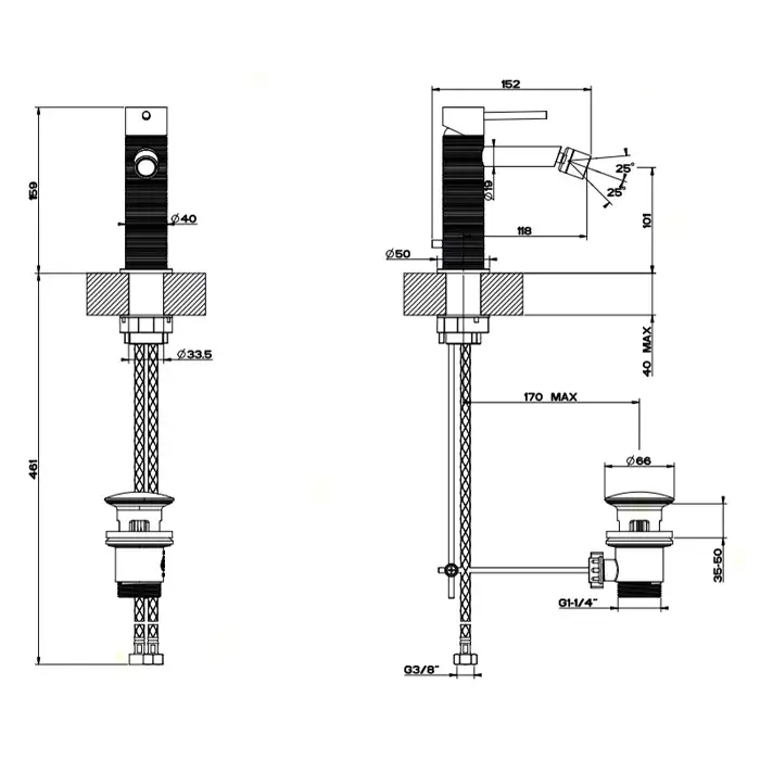 Gessi 316 Trame Смеситель для биде, однорычажный, с донным клапаном, цвет: steel brushed 54307#239