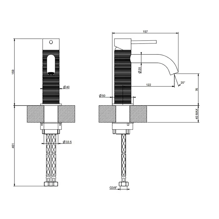 Gessi 316 Trame Смеситель для раковины без донного клапана однорыч., цвет: black metal brushed PVD 54302#707