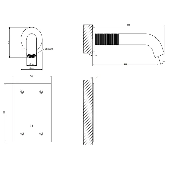 Gessi 316 Trame Смеситель для раковины настенный, излив 20 cм, цвет: Steel Brushed 54315#239