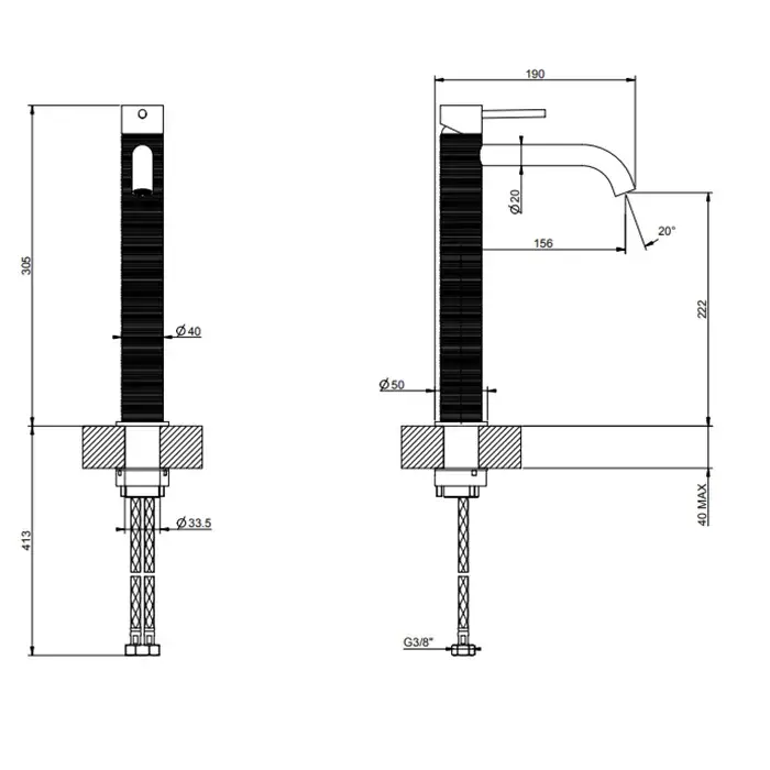 Gessi 316 Trame Смеситель для раковины высокий без дон. клап. однорыч., цвет: black metal brushed 54306#707