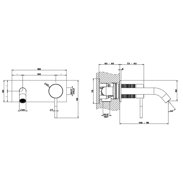 Gessi 316 Trame Встраиваемый смеситель для раковины, цвет: brushed black metal pvd 54388#707