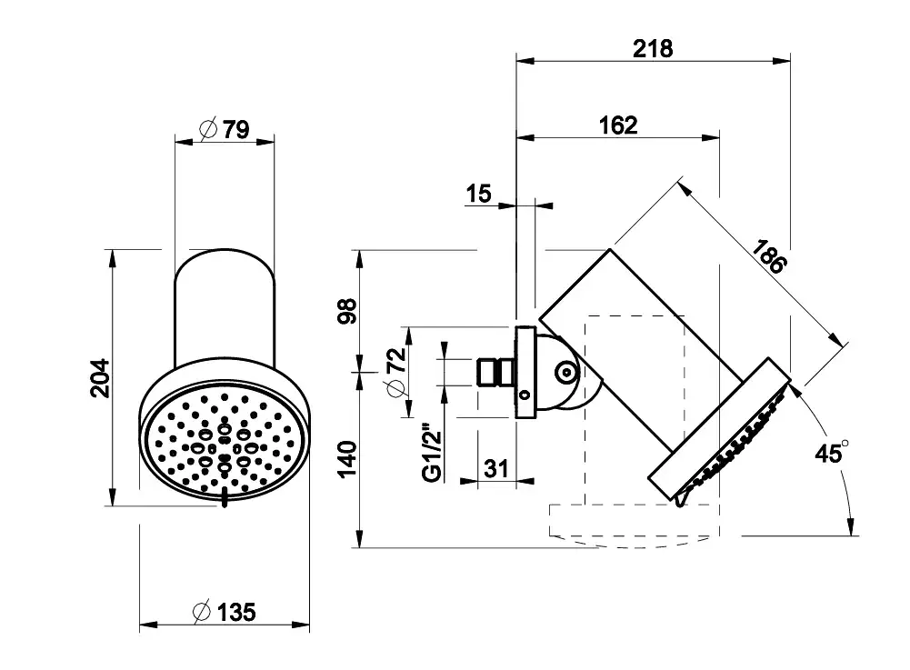 Размер верхнего душа, см