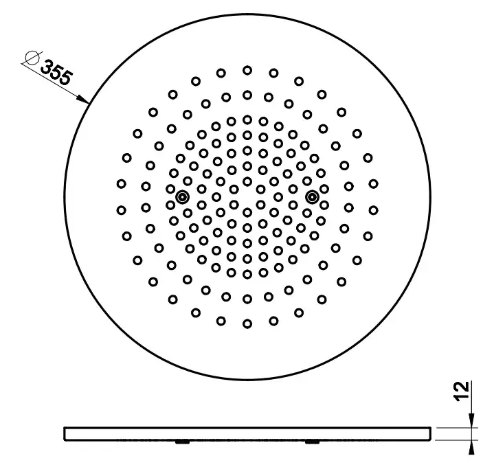 Размер верхнего душа, см