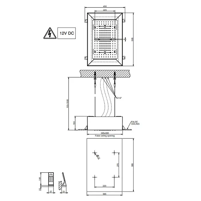 Gessi Minimali Верхний душ встраиваемый 50x50 см 3 вида струи, внешняя часть, цвет: matte black 57016#299