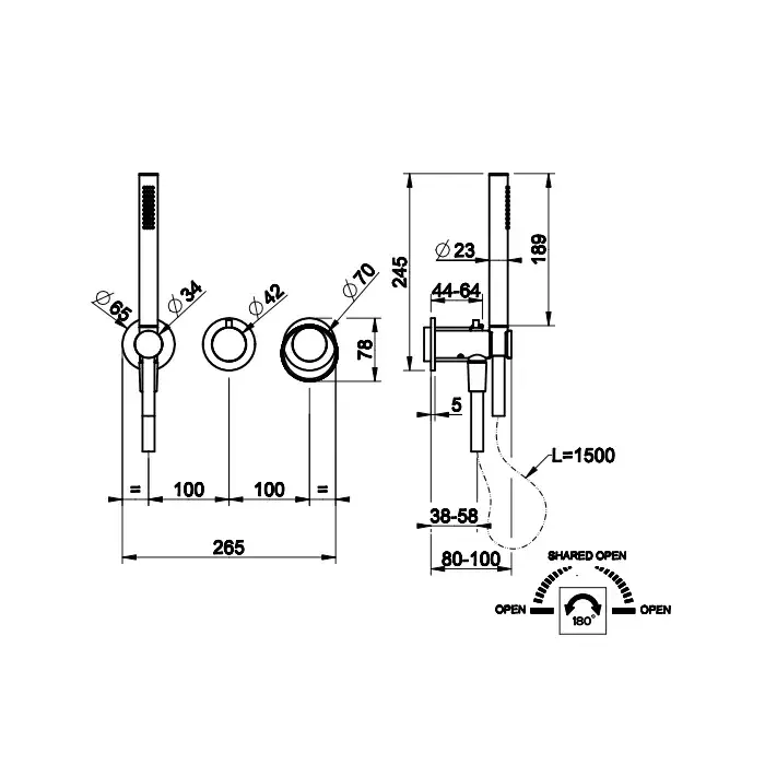 Gessi Anello Смеситель для ванны встраиваемый 2 потребителя, лейка, внешняя часть, цвет: chrome 63345#031
