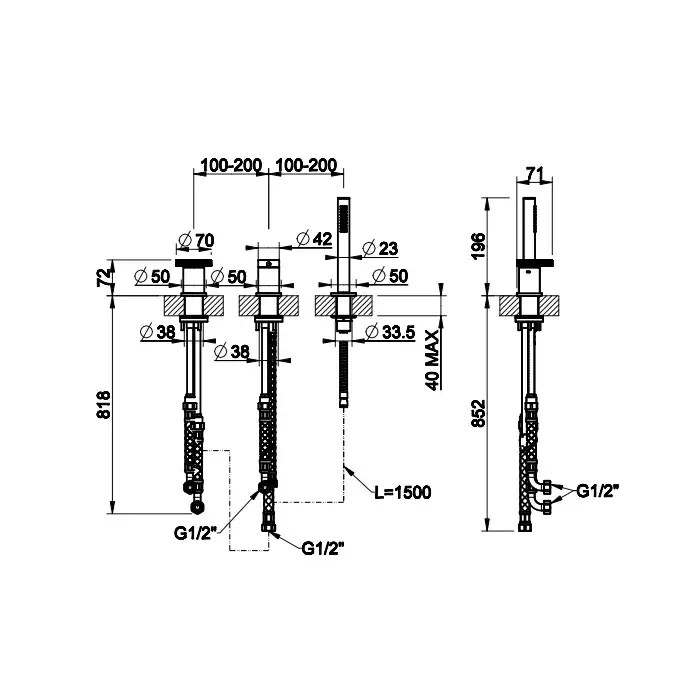 Gessi Anello Смеситель на борт ванны на 3 отверстия, девиатор, шланг, душ, цвет: chrome 63347#031