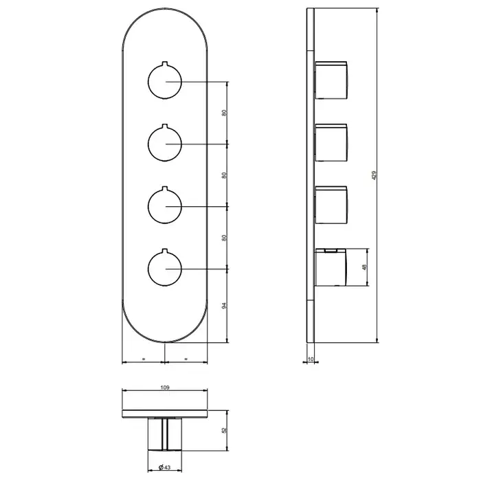 Gessi Anello Термостат для душа встраиваемый на 3 потребителя, внешняя часть, цвет: chrome 43066#031