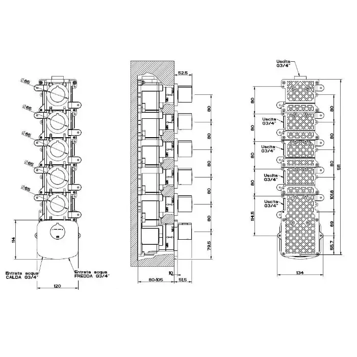 Gessi Anello Термостат для душа встраиваемый на 5 потребителей, внешняя часть, цвет: chrome 43240#031