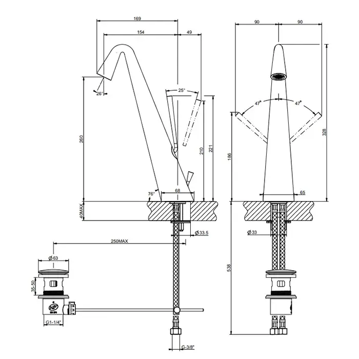 Gessi Cono Смеситель для накладной раковины раковины цвет: copper PVD 45003#030