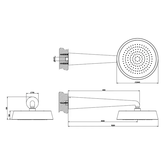 Gessi Cono Верхний душ 24 см 1 вид струи, кронштейн настенный 40 см, цвет: black metal brushed PVD 45151#707