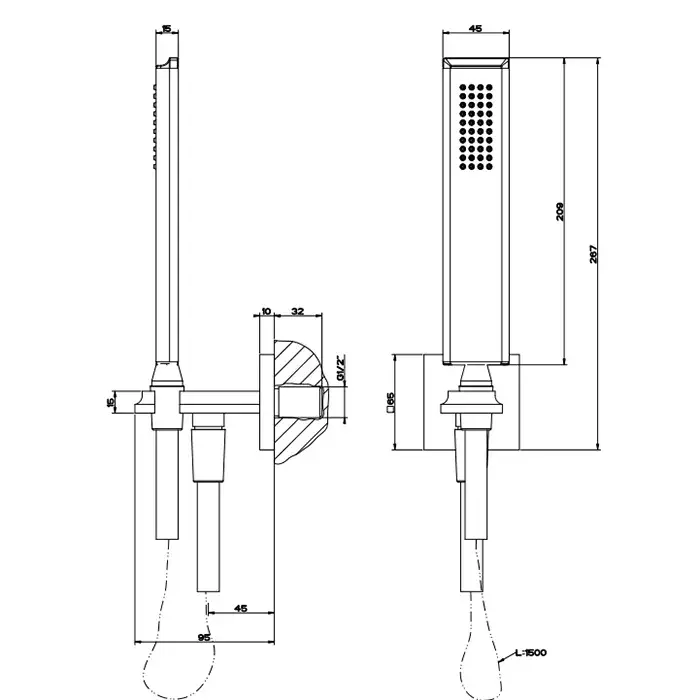 Gessi Eleganza Душевой гарнитур: ручной душ, держатель с выводом воды, шланг 150 см, цвет: chrome 46127#031