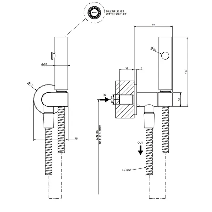 Gessi Гигиенический душ, с выпуском-держателем и шлангом 1.25 м цвет: finox brushed nickel 14331#149