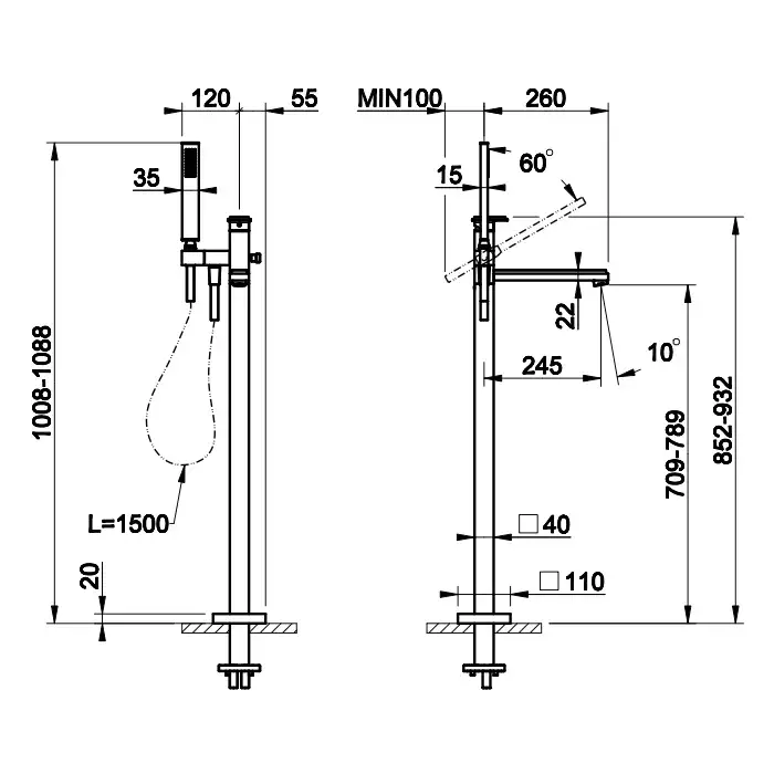Смесители для ванны напольные