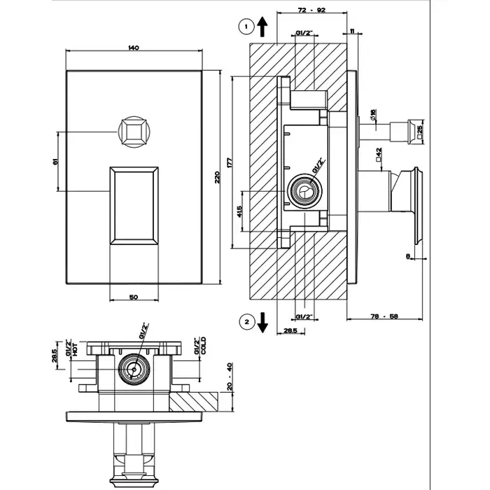 Gessi Eleganza Смеситель для ванны встраиваемый 2 потребителя, внешняя часть, цвет: gold CCP brushed 46079#087