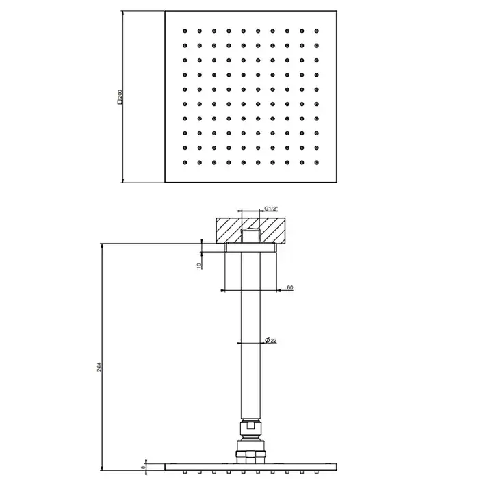 Размер верхнего душа, см