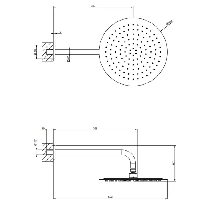 Размер верхнего душа, см