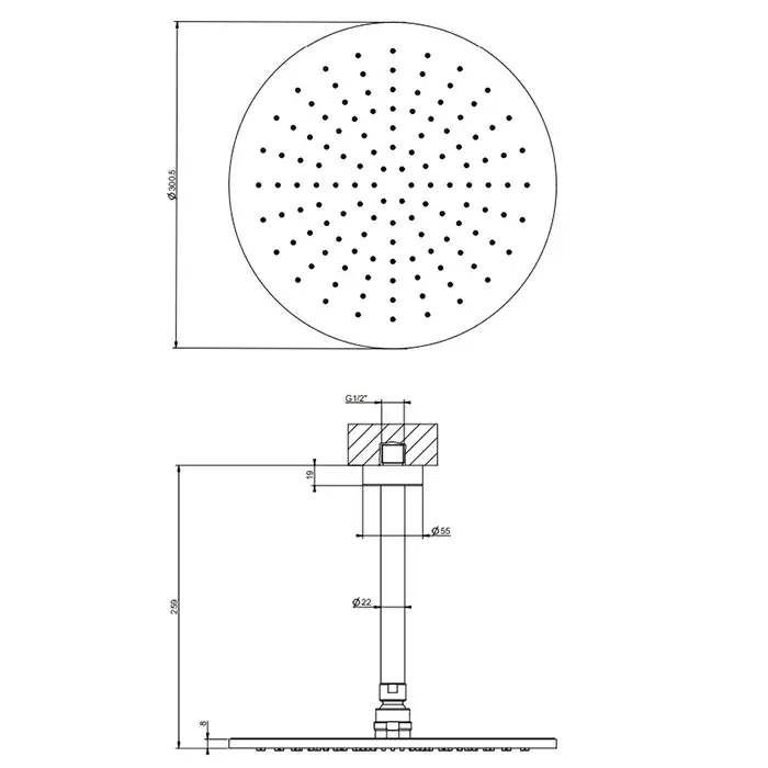 Gessi Emporio Shower Верхний душ 30 см, кронштейн потолочный 26 см, цвет: finox brushed nickel 47370#149