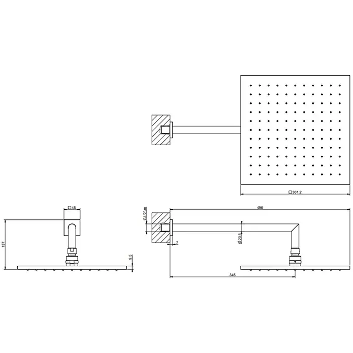 Gessi Emporio Shower Верхний душ 30x30 см 1 вид струи, кронштейн настенный 35 см, цвет: matte black 47364#299
