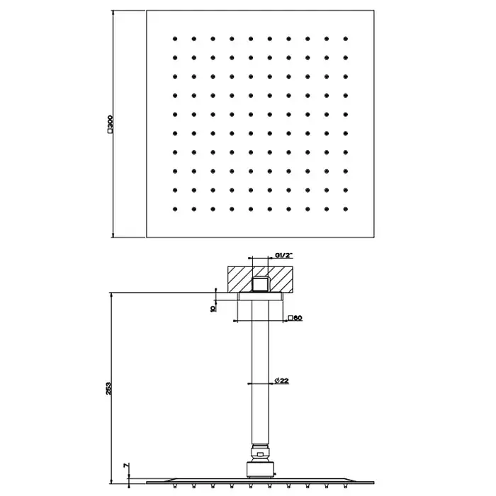 Размер верхнего душа, см