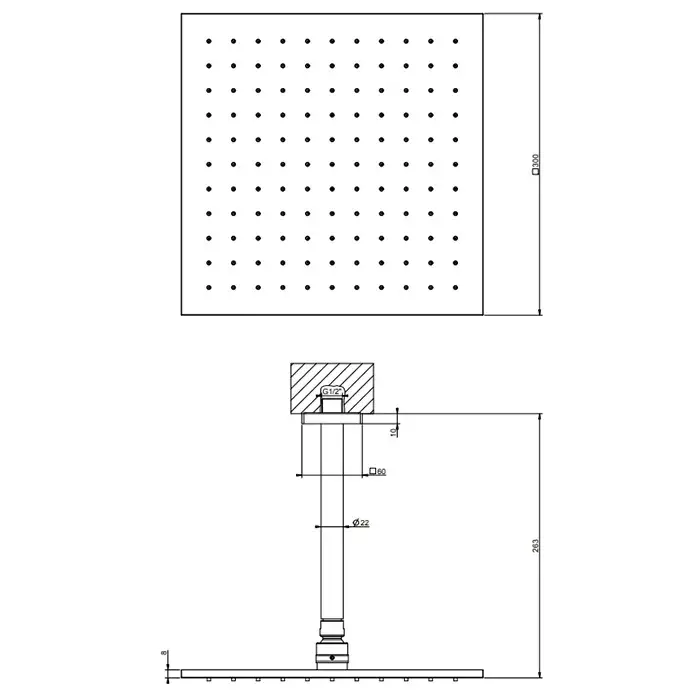 Размер верхнего душа, см