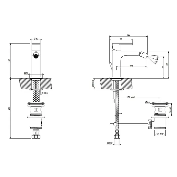 Gessi Emporio Via manzoni Смеситель для биде, однорычажный, с донным клапаном, цвет: matte black 38607#299