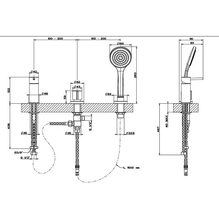 Gessi Emporio Via tortona Смеситель на борт ванны, на 3 отв., с ручным душем, цвет: Chrome 18643#031