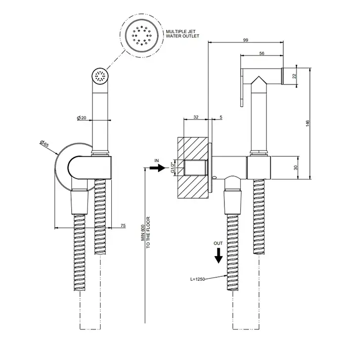 Gessi Гигиенический душ, с выпуском-держателем и шлангом 1.25 м цвет: brass PVD 14331#710